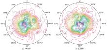 1968年12月(a)和2018年12月(b)极涡面积空间比较