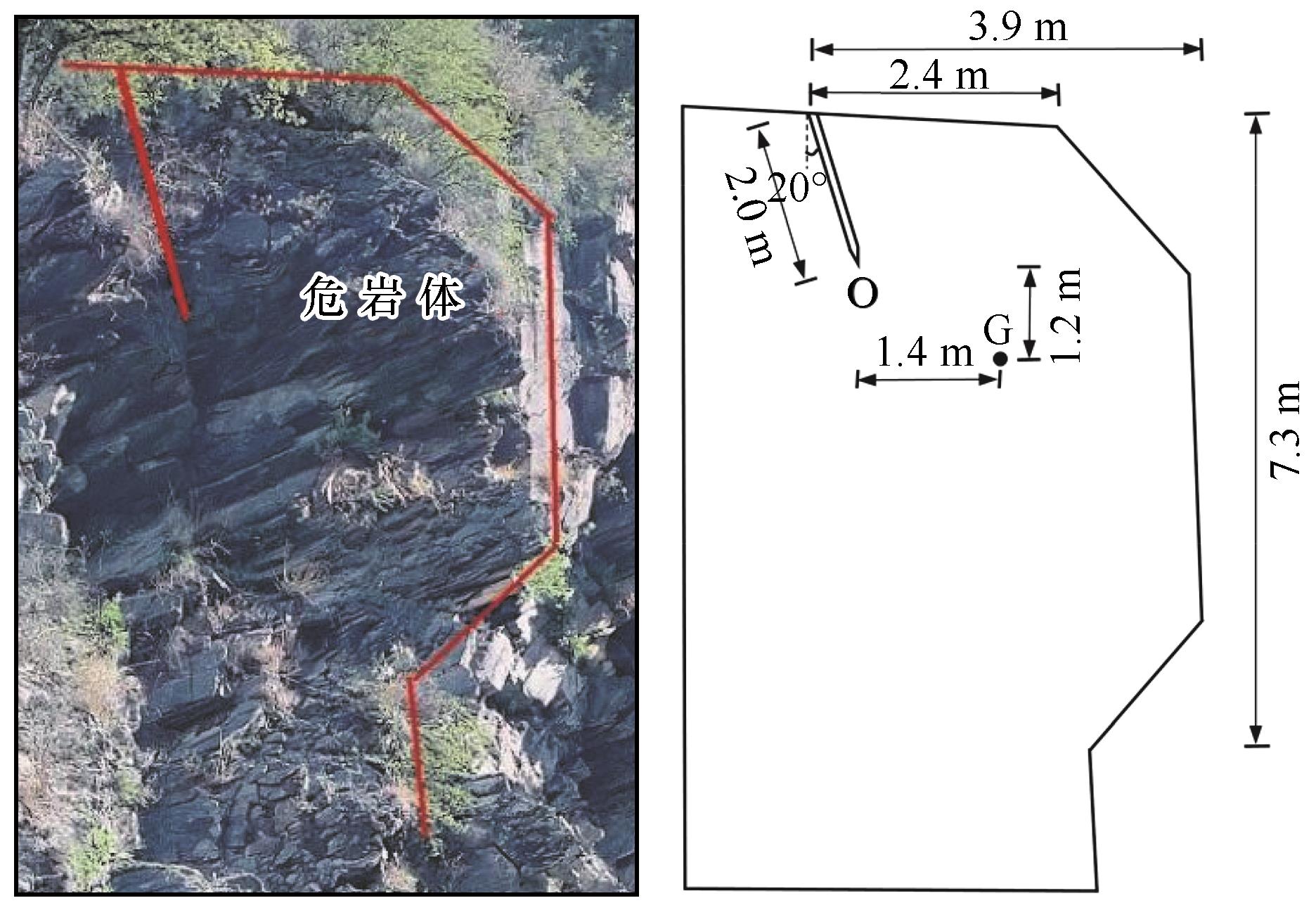 Site photo (a) and planar model (b) of a dangerous rock in the study area