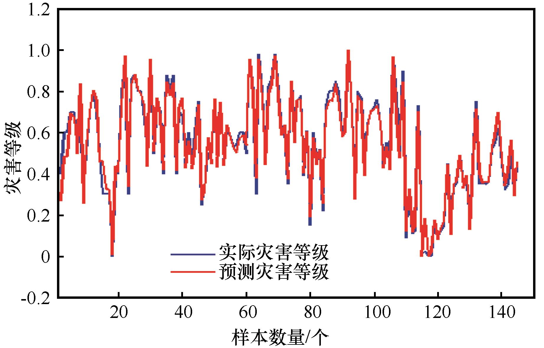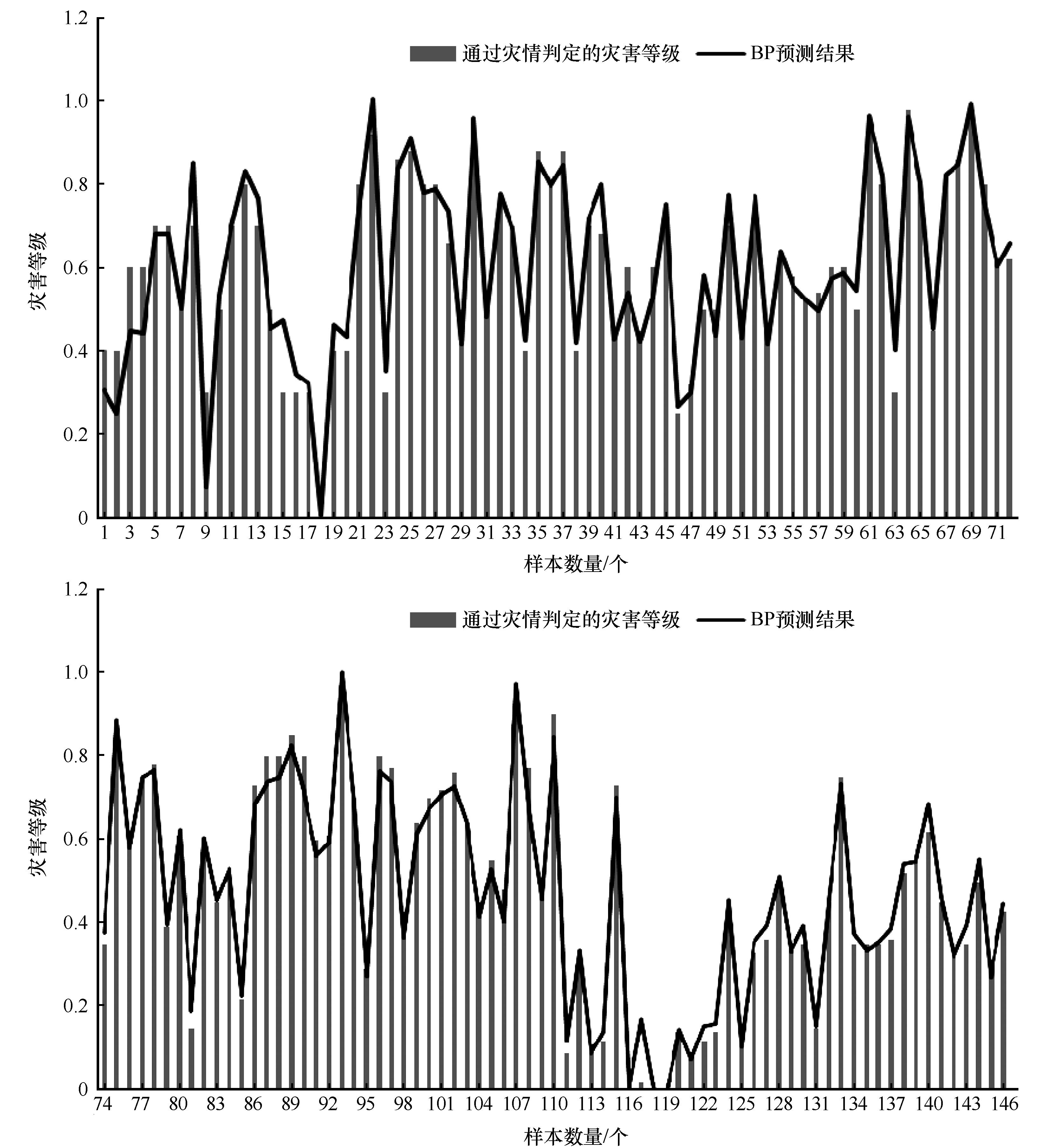 The absolute error between BP prediction result and disaster grade determined by disaster losses