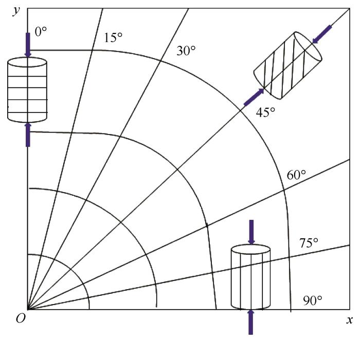 岩体在成岩过程及后期构造作用下, 会形成软弱结构面, 导致其变形破坏模式及强度表现出显著的各向异性。国内外学者对岩体的各向异性进行了大量的研究。其中Ramamurthy[32]根据不同层理角度情况下岩石单轴抗压强度的变化特征, 对岩石强度各向异性进行了定义, 用各向异性度RC来衡量。