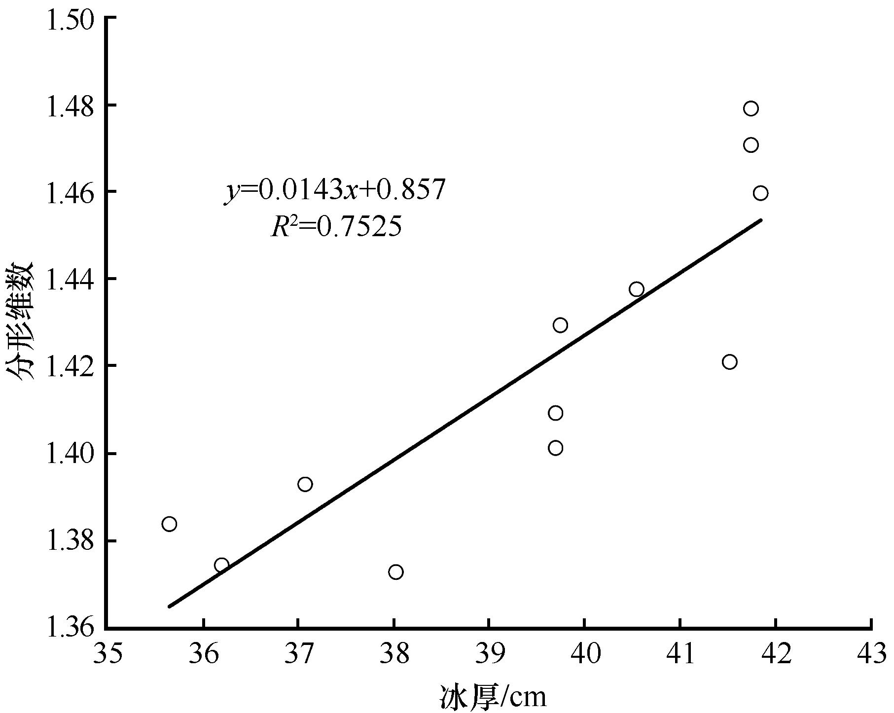 | 图8 固定点处冰裂缝分形维数与冰层厚度的关系 |