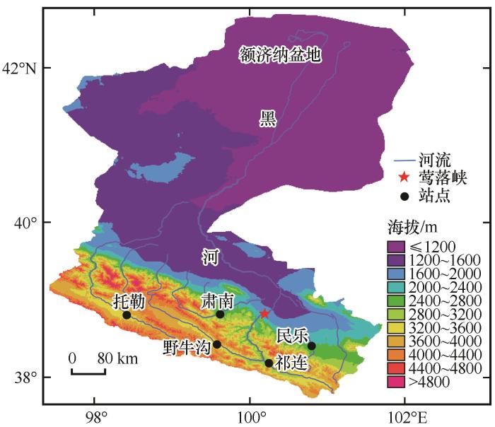 ... 黑河发源于青海省的祁连山, 进入甘肃省的河西走廊, 最终到达内蒙古自治区额济纳旗东居延海和西居延海, 全长821 km.流域面积约13×104 km2.本文研究点(图1)集中在黑河上游(上游和中游以莺落峡为界), 海拔1 700 ~ 5 564 m, 寒冷阴湿, 多年平均气温-5 ~ 4 ℃, 年降水量在200 mm以上, 多集中在夏季, 局部高山带年降水可达600 ~ 700 mm, 年均融水量约4×108 m3[18]. ...