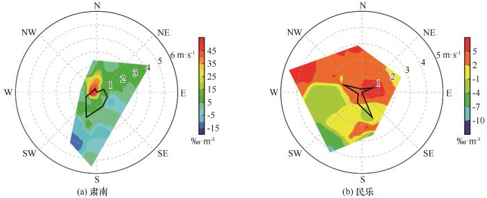 ... 在黑河上游均匀选取肃南、 民乐、 野牛沟、 祁连和托勒五个站点作为研究站点.降水发生时, 用容器快速采集水样, 降低蒸发带来的数据误差.对于液态水, 用塑料水样瓶密封保存; 固态水样(降雪)需要装入干净的塑料袋内, 自然融化后装入水样瓶中密封, 并记录降水发生时的基本气象要素.降水δ18O、 δD日数据时段为2015年8月 - 2016年8月, 野牛沟数据时段为2015年8月 - 2016年7月.水样实验在西北师范大学地理与环境科学学院稳定同位素实验室完成, δD和δ18O值的测试误差分别不超过±1‰和±0.3‰.后向轨迹、 PSCF使用的是由美国国家环境预报中心的GDAS气象数据, 空间分辨率为1°×1°.风速、 风向数据来自国家气象信息中心(http://data.cma.cn/).大气可降水量、 水汽通量的计算参照相关文献[23], 春、 夏、 秋、 冬的水汽通量采用欧洲中期天气预报中心的ERA-Interim数据, 空间分辨率为0.75°×0.75°, 为了与后向轨迹高度相对应, 根据后向轨迹起始高度和气压高度对照表对700、 650、 600、 550、 500 hPa气压高度层进行分析.暴雨水汽通量使用分辨率为2.5°×2.5°的NCEP气象数据, 气压高度层是地面至500 hPa.降水水汽同位素数据根据公式[24]计算得到: ...