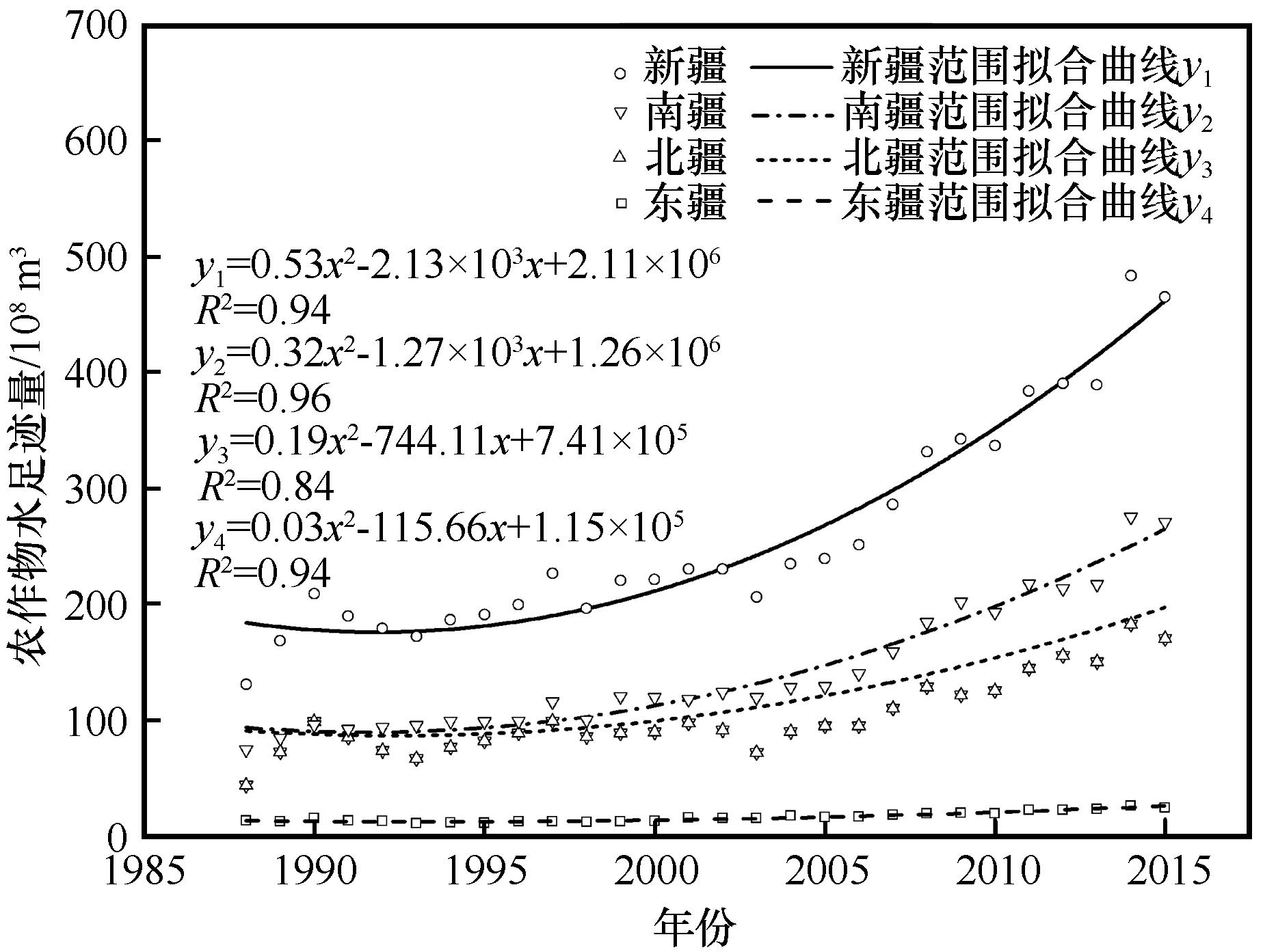 | 图2 新疆范围内1988—2015年农作物水足迹总量及增长趋势 |