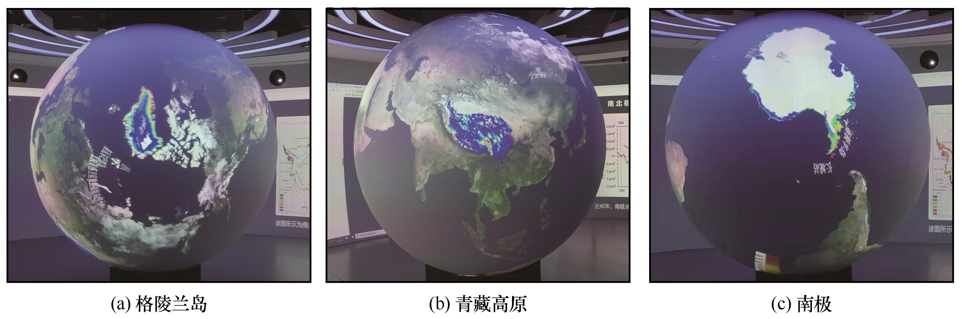 | 图11 球形系统展示三极温度异常对格陵兰岛、青藏高原及南极的影响(数据动态变化) |