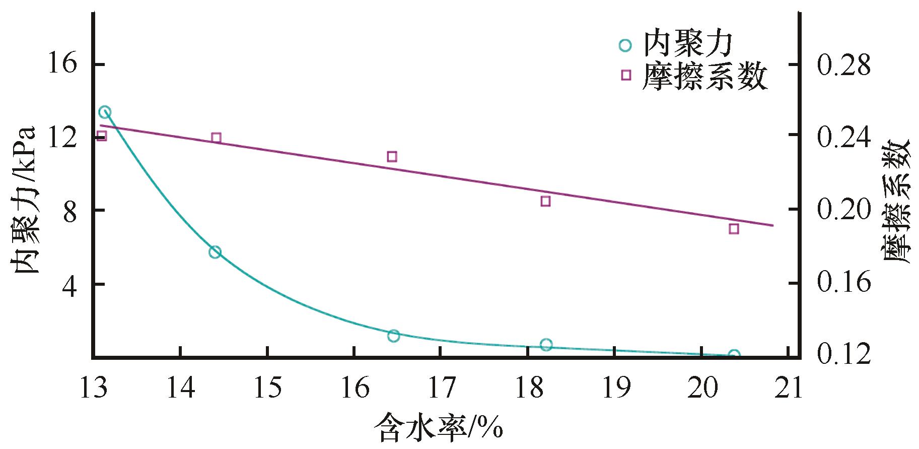 | 图10 滑带土残余抗剪强度指标与含水率关系曲线 |