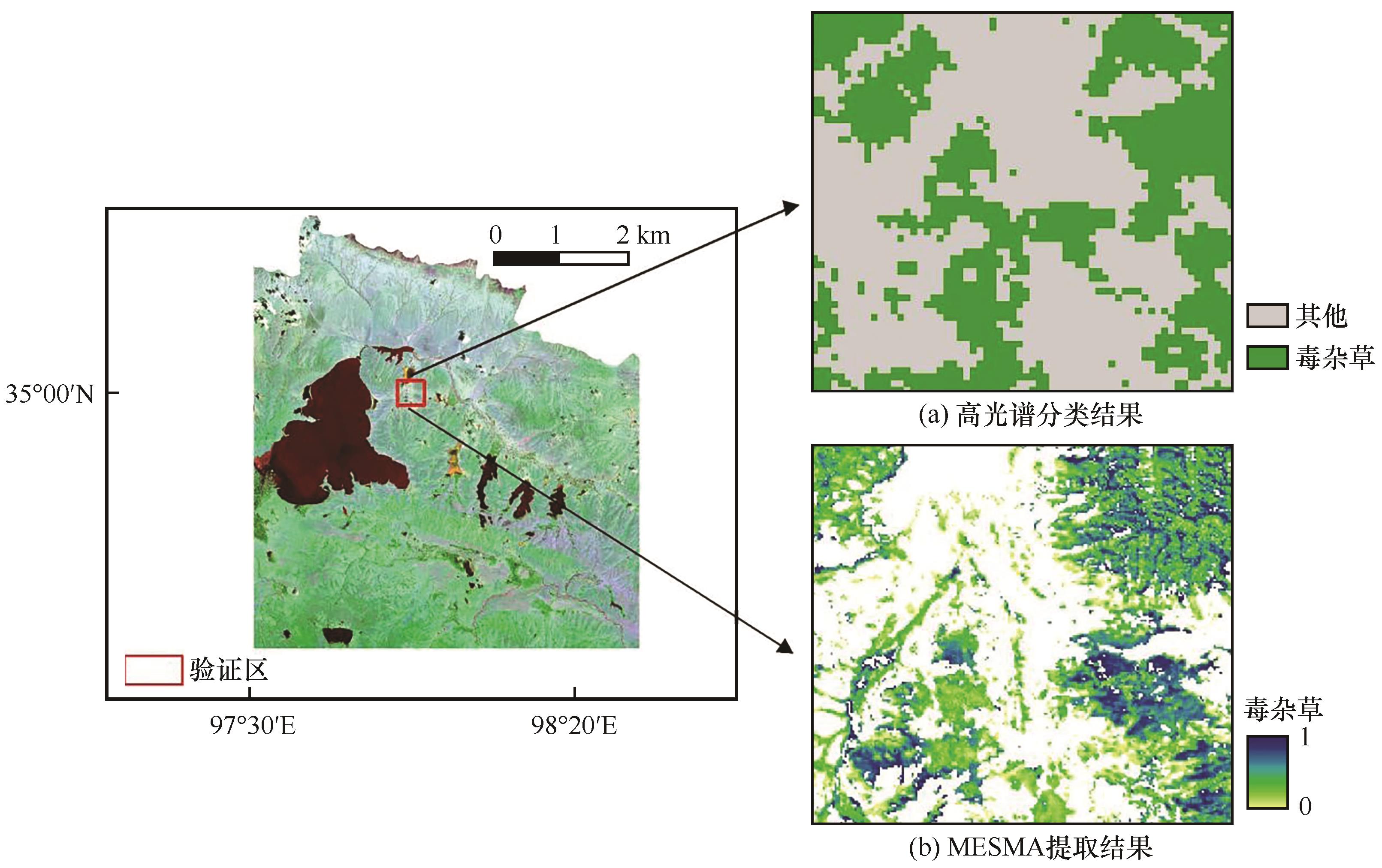 | Fig.9 Comparison results of poisonous weeds: results of hyperspectral classification (a) and results of MESMA (b) |