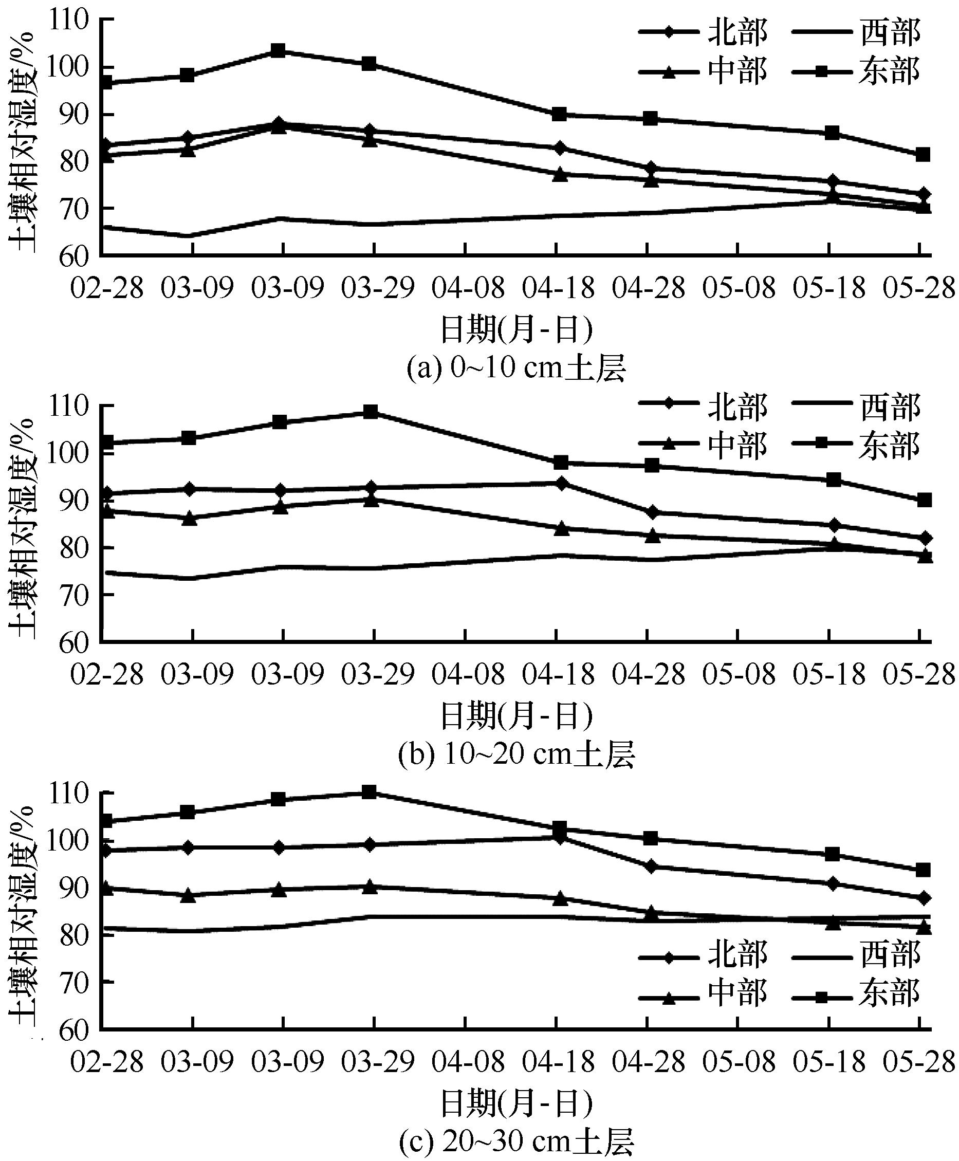 | Fig.10 Average humidity of the soil at different levels from 1961 to 2018: 0~10 cm (a), 10~20 cm (b) and 20~30 cm (c) |