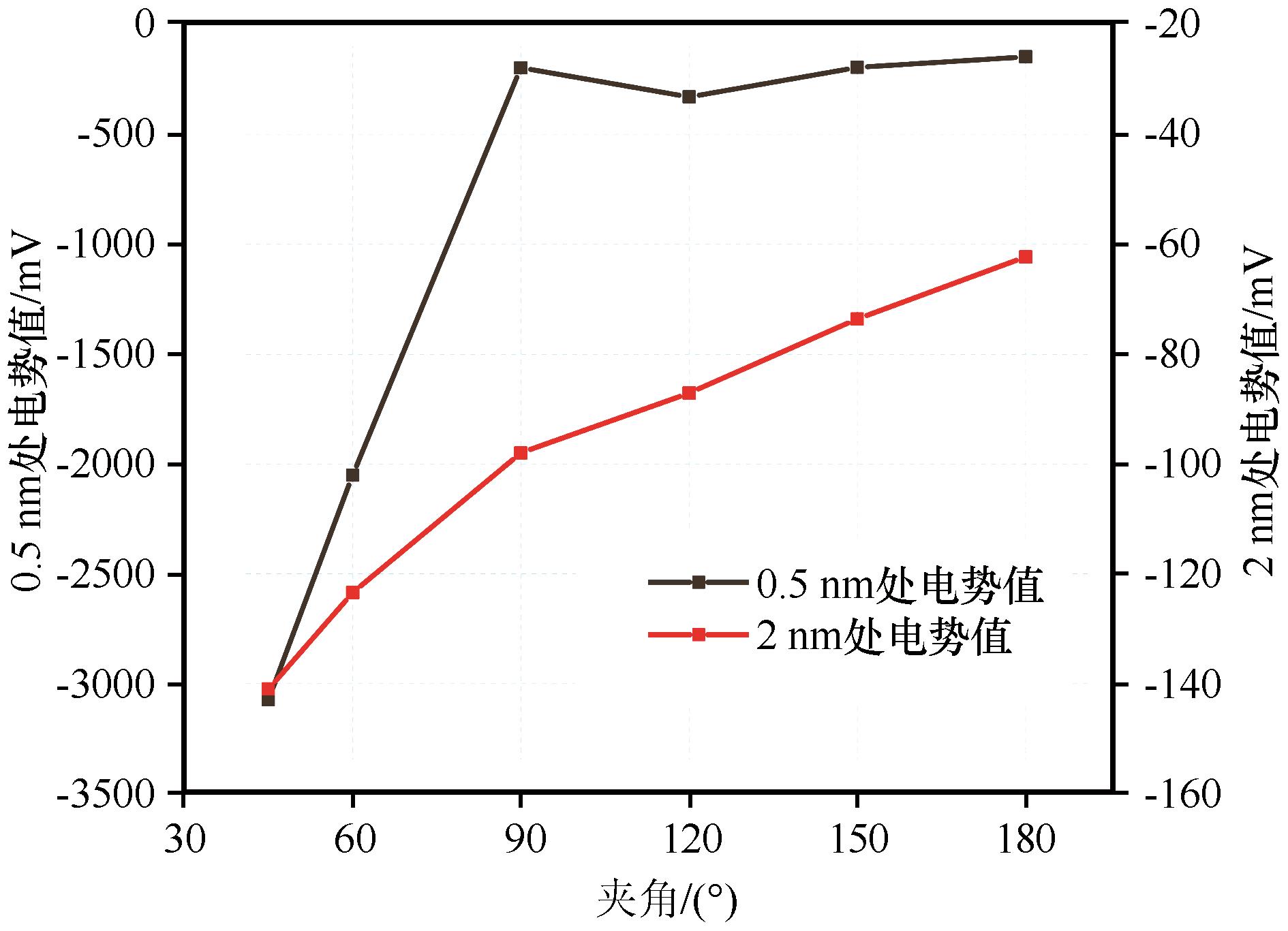 图11. 折线夹角对不同位置处电势分布的影响 |