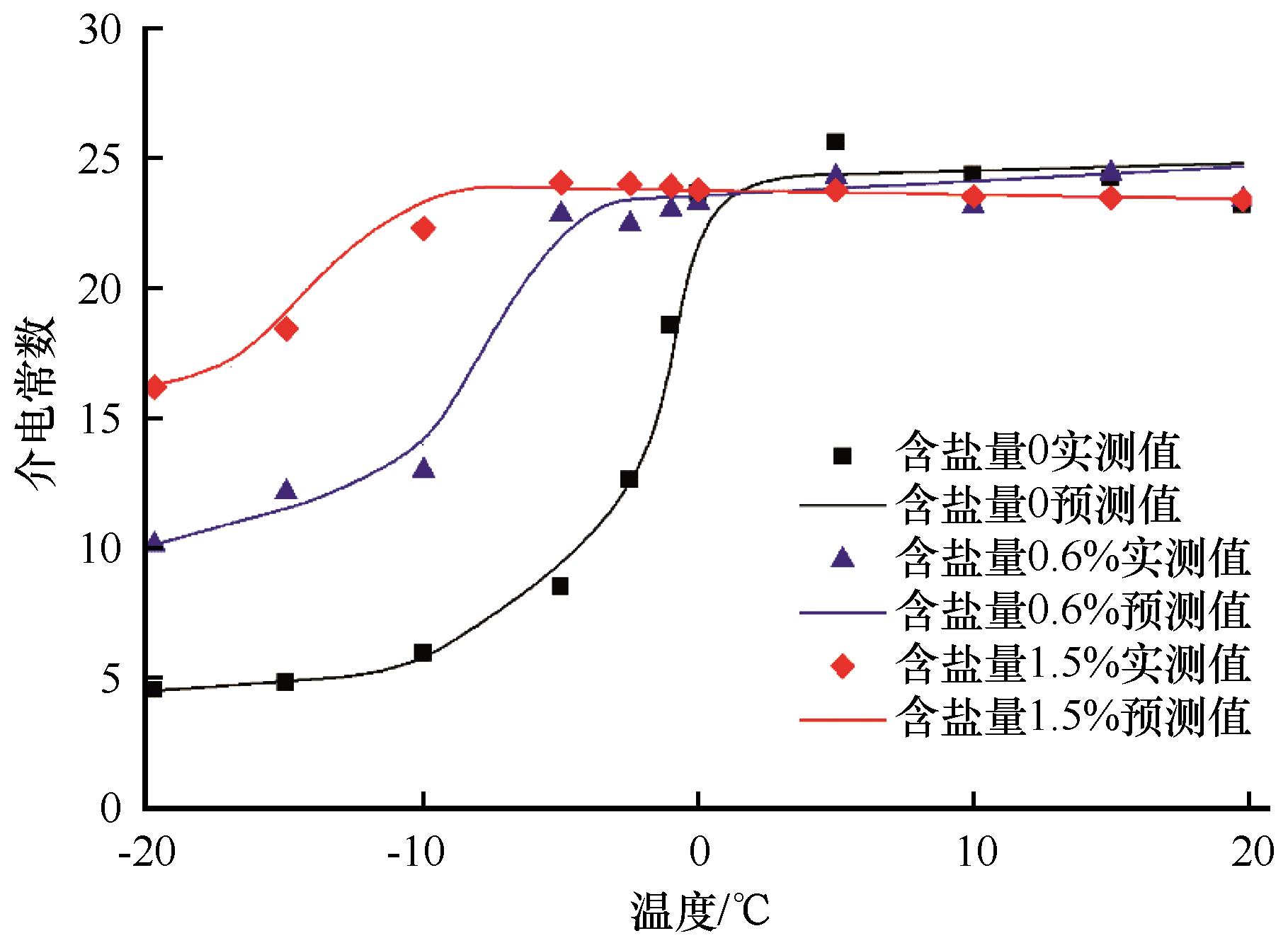 图10. 土样介电常数实测值与式(7)预测值对比
