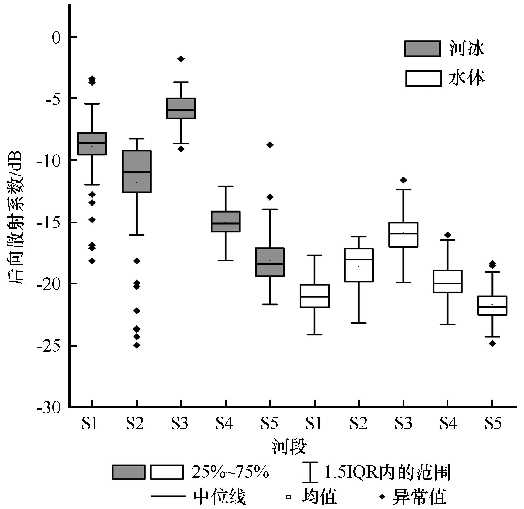 | 图5 不同河段冰水像元后向散射系数值分布 |