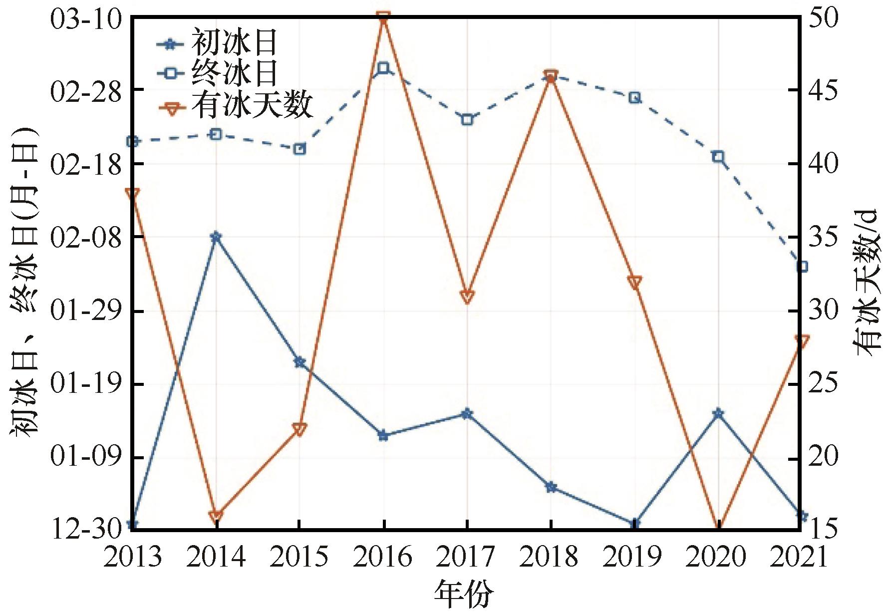 | 图10 温坨子站初冰日、终冰日与有冰天数年际变化 |