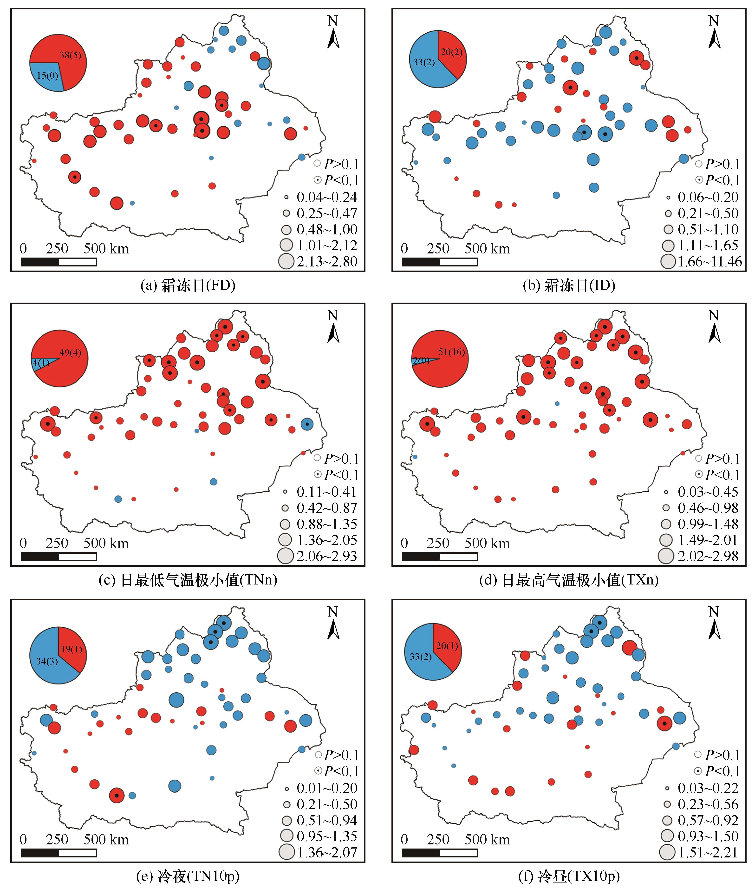 | Fig. 7 Significant difference in extreme cold indices for NAO positive-NAO negative phase |