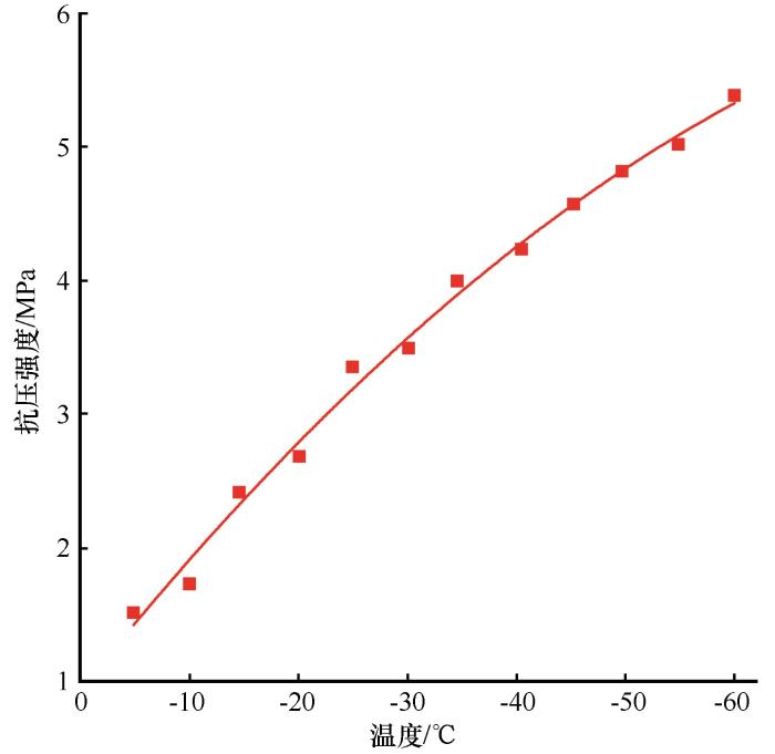 图1 冻土抗压强度-温度曲线[22 ] Variation of compressive strength of frozen soil with temperature[22 ] Fig. 1 ![]()