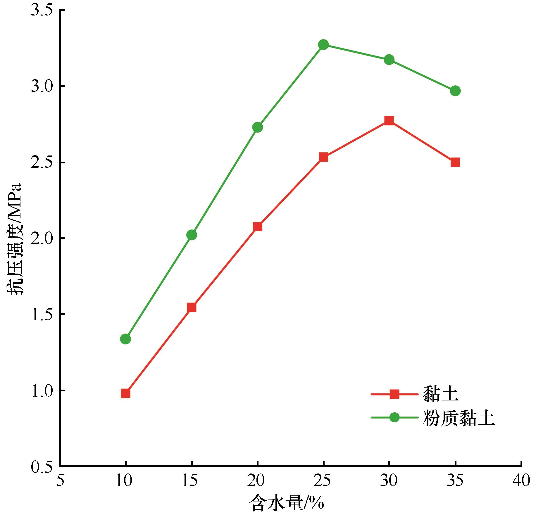 | Fig. 7 Compressive strength of frozen soil at different water contents[ |