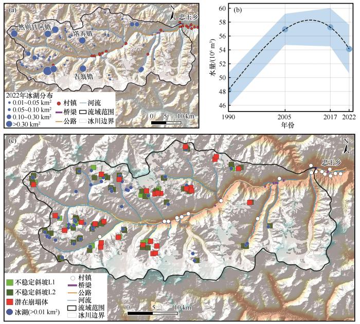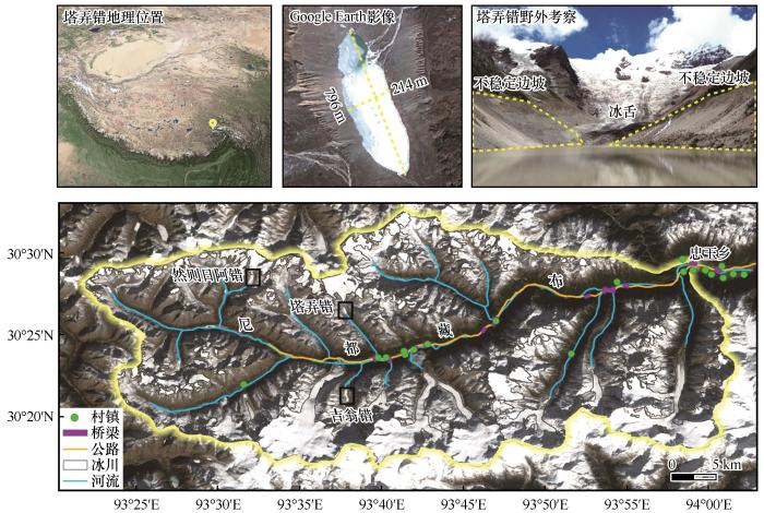 冰碛阻塞湖(简称冰碛湖)指以现代冰川融水为主要补给源,受冰碛垄阻塞在终碛垄与冰舌之间形成的湖泊[1]。随着全球气候变暖,冰川融水增加,为冰碛湖的扩张和发育提供了充足的空间和水源补给[2-4]。冰湖不仅是高山区重要的水资源,也是许多冰川灾害的孕育者和发源地[5-6]。冰湖溃决洪水(glacial lake outburst flood,GLOF)指冰湖中储存的大量水由于坝体垮塌或湖水漫顶、瞬间泄洪形成的突发性洪水[7]。已有记录表明大部分冰湖溃决洪水源自于冰碛湖,此类洪水具有突发性强、洪峰流量高、破坏性强、波及范围广等特点[8-10]。不仅可以直接破坏下游地区的基础设施,而且可能引发滑坡或泥石流等一系列次生灾害链[5-6,11]。青藏高原东南部自1935年以来记录已发生了近20次冰湖溃决洪水[10,12-13]。冰湖溃决洪水严重影响着承灾区居民的生命财产安全及寒区基础设施,现已成为制约山区可持续发展的重要因素之一[5,14]。